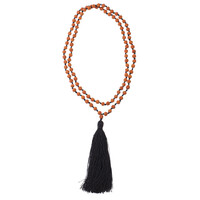 Traditional mala handcrafted on the exotic island of Bali made of Rudraksha seeds, adorned with an orange tassel.