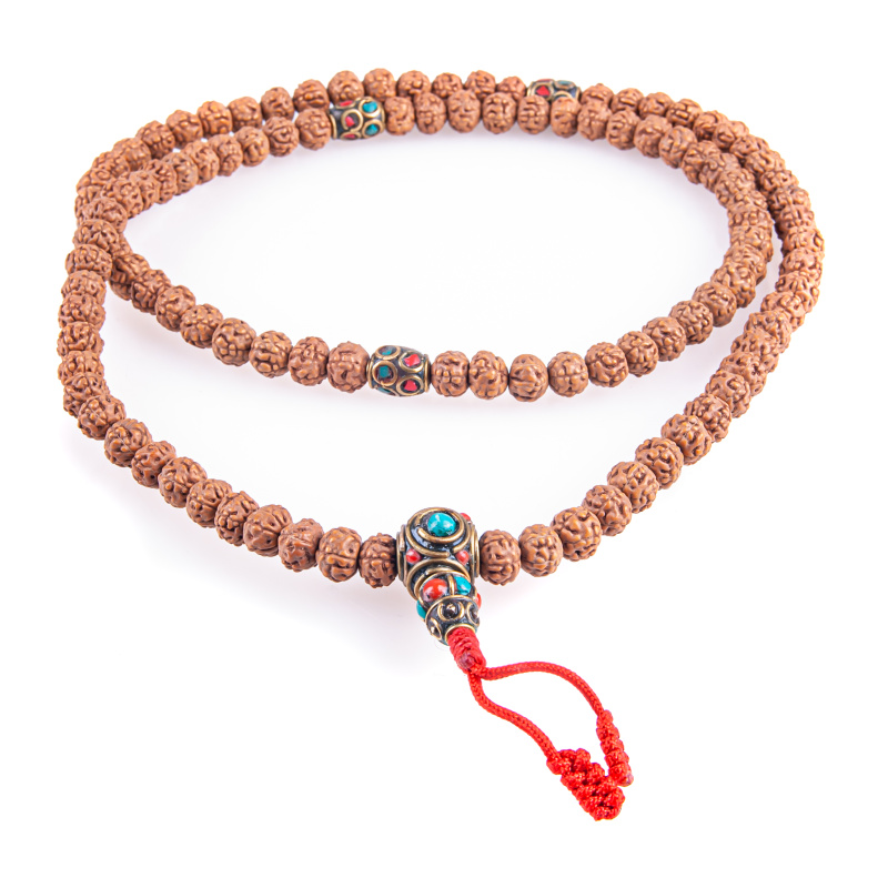 Thengwa is a traditional Tibetan Buddhist rosary bead that has 108 beads and is used for counting when reciting sacred mantras. Thengwa is one of the most famous symbols of Tibet. It is worn in the hand, wrapped around the wrist, or around the neck. The number 108 is Buddhism's most sacred number. This number also has one very practical meaning for every reciter, because if a mantra needs to be recited a hundred times, one only needs to pass the thengwa once, the remaining eight extra mantras are offered by the reciter for the benefit of all sentient beings. The beginning and end of the thengwa is the so-called "teacher's ball", which symbolizes both wisdom and emptiness. After the 108 mantras have been recited and the whole thengwa has been "passed", it is turned over and a new cycle begins in the reverse direction.