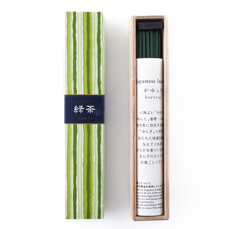 Japanese fragrance sticks Nippon KAYURAGI Green Tea, it is a premium fragrance for meditation, relaxation, stress reduction, massage, reading, yoga and bathing.