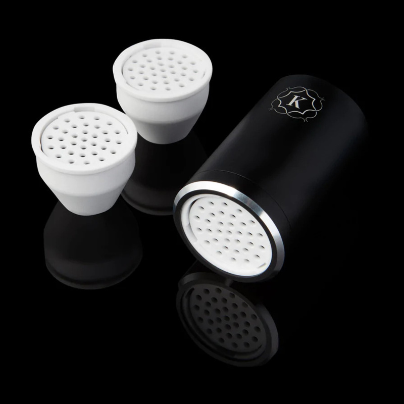 Thanksfully, Kaloud has also thought of pipe makers who haven't yet fallen under the spell of Krysalis Eltheria pipes. It is for them that Kaloud has created the Kaloud Ayara Large carbon filter adapter with built-in diffuser, which hides the coveted filter inside, and the silicone gasket allows it to be fitted to almost any pipe.