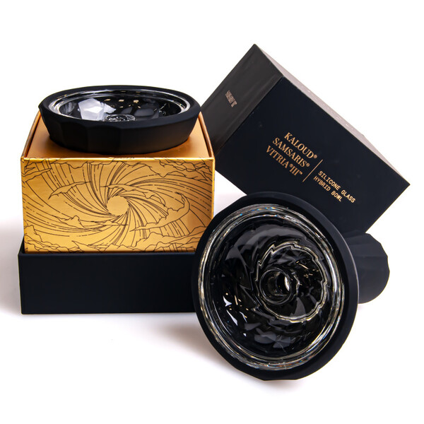 The manufacturer of exclusive hookah accessories Kaloud has once again listened to the wishes of their customers and modified the third model of the silicone-glass bowl Samsaris Vitria III. The Samsaris Vitria differs from the version II by a slight design improvement. Of course, there is an enlarged center tunnel for better inhale. At the same time, the glass section is slightly modified so that the tobacco space does not suffer in capacity in favor of a larger opening. And, of course, it still holds true that you do not put the HMS (heat management system) on the silicone, but only on the glass part.