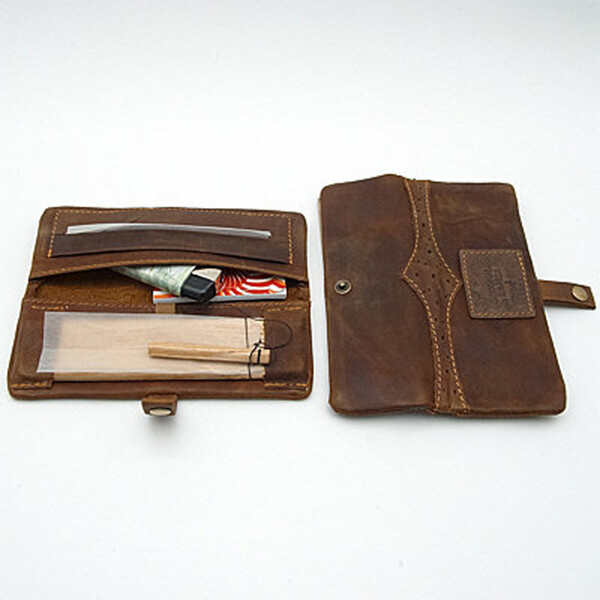 The practical pocket-sized leather packer - Kavatza mini Pouch Marry Poppins - is made of high-quality genuine leather. Inside the pouch there is a pocket for storing tobacco and smoking accessories for packing cigarettes (fittings, lighter, etc.), as well as a compartment for cigarette papers, a wooden rolling pin and a filler (frother).