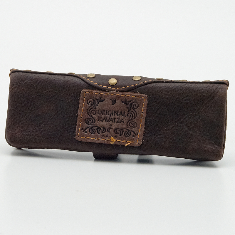 The practical pocket-sized leather packer - Kavatza mini Pouch Wild Thing - is made of high quality genuine leather. Inside the pouch there is a pocket for storing tobacco and smoking accessories for packing cigarettes (fittings, lighter, etc.), as well as a compartment for cigarette papers, a wooden rolling pin and a filler (frother).