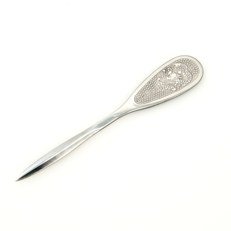 Knife for pressed Pu Erh. When cutting pressed tea, especially Tuo Cha and Pu Erh, it is important to break it into the desired pieces as gently as possible to not cause much damage to the pressed leaves as a whole. This is what this knife is for. It can easily split a cookie or a cake of pressed Pu Erh without damaging the tea leaves.