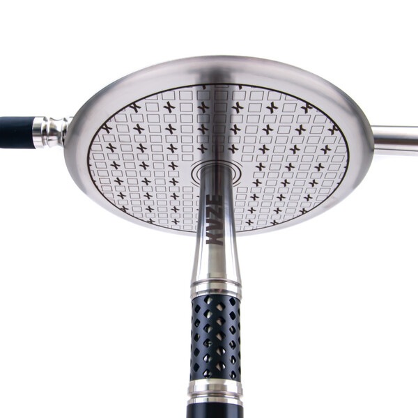An interesting check valve design is also common in newer hookah models. The normal check valve has been replaced by top check valves, or as in the case of the KVZE Grip, an ingenious routing of the smoke through the body of the hookah to a perforated sleeve through which the smoke passes out.