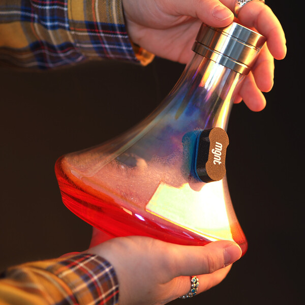 Cleaning a base has never been easier. Add soapy water to the base and shake it to create foam. Pour out the water, leaving only the foam inside. Split the squeegee into two parts, put the one without the logo inside of the base and put the other one on the same place from the outside – mgnt lock together, allowing you to clean. Proceed from the bottom to the neck of the base, the dirt will disappear before your eyes, and within a minute of care, the base is crystal clean and almost like new again. Before using mgnt, carefully read the instruction manual for proven cleaning procedures and other instructions.