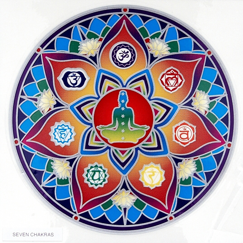 Amazingly colourful sun mandala with seven chakras motif, Sunseal Seven Chakras mandala