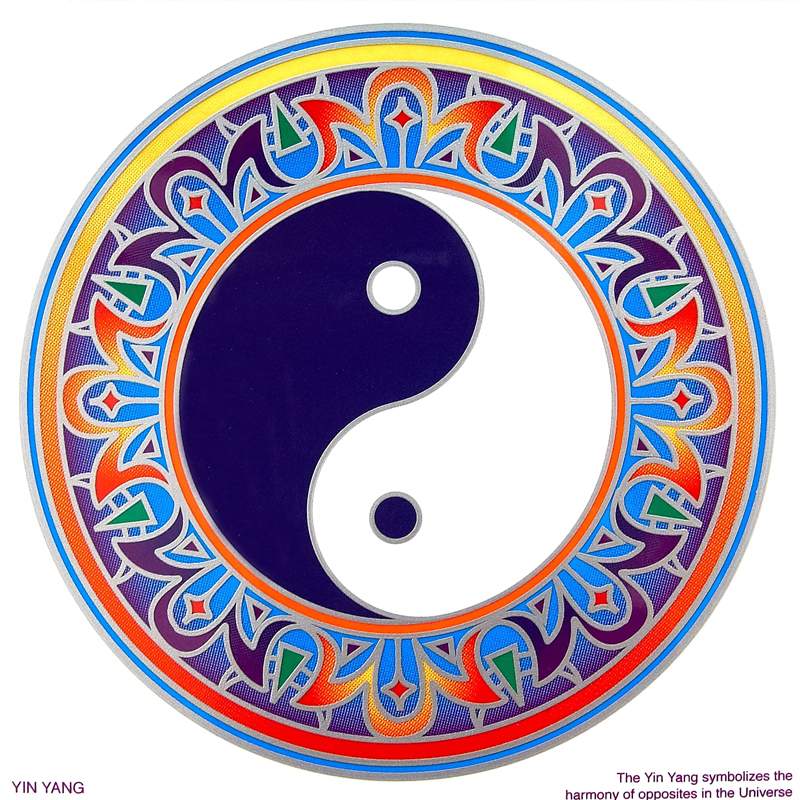 Amazingly colourful sun mandala with the popular symbol of balance, the Sunseal Yin Yang mandala