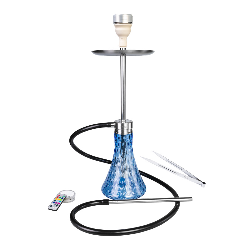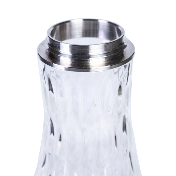 The marvin Lite Premium stem is made of high-quality food-grade steel, styled in a stick-type construction. The connection to the base is provided by a short but massive thread. The manufacturer has played with the base itself in the Lite Premium hookahs, and the hand-blown patterned glass in colour variations gives the hookah a luxurious look. And, of course, there is also a hole for the LED module.