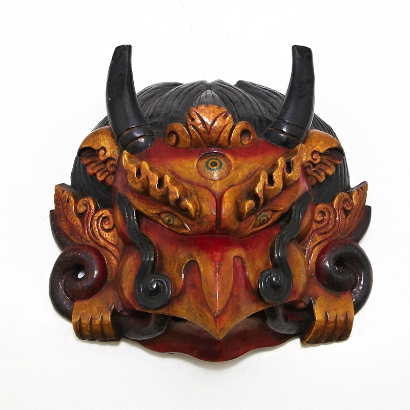 Decent coloured mask of Garuda, who is considered the forerunner of the modern rendition of the Phoenix bird. Garuda has the body of a man and the head of an eagle, used to transport the god Vishnu. However, he is also a symbol of courage and strength in overcoming obstacles.
