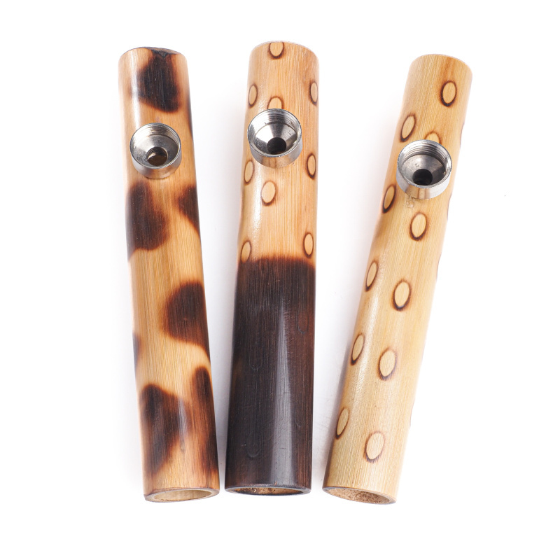 Excellent bamboo pipe with larger diameter mouthpiece and tube. The spout is equipped with a metal cauldron and decorated with a picture.The length of the spout is 15cm.