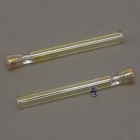 Perfect smaller slug made of durable borosilicate pyrex glass with side turbo. The whole pipe is decorated with blue stripes.