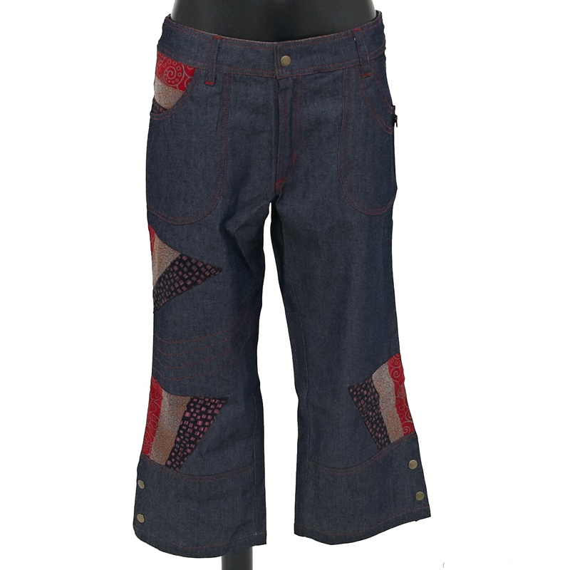 Originally decorated denim trousers from Nepal, Bamboo's 11 Summer 2014, size M