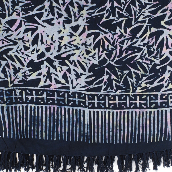 The traditional batik method, practiced for centuries by the natives of Indonesia, is used to decorate the fabric. Wax is applied to parts of the fabric and then the fabric is dipped into a plant-based dye. After the wax is removed with hot water, a light-coloured pattern appears on the fabric.