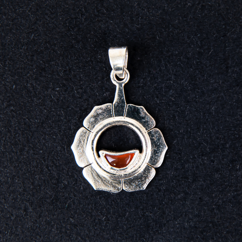 Beautiful silver jewelry, symbolizing the Svadhisthana cross chakra, is made of 925 silver and carnelian.