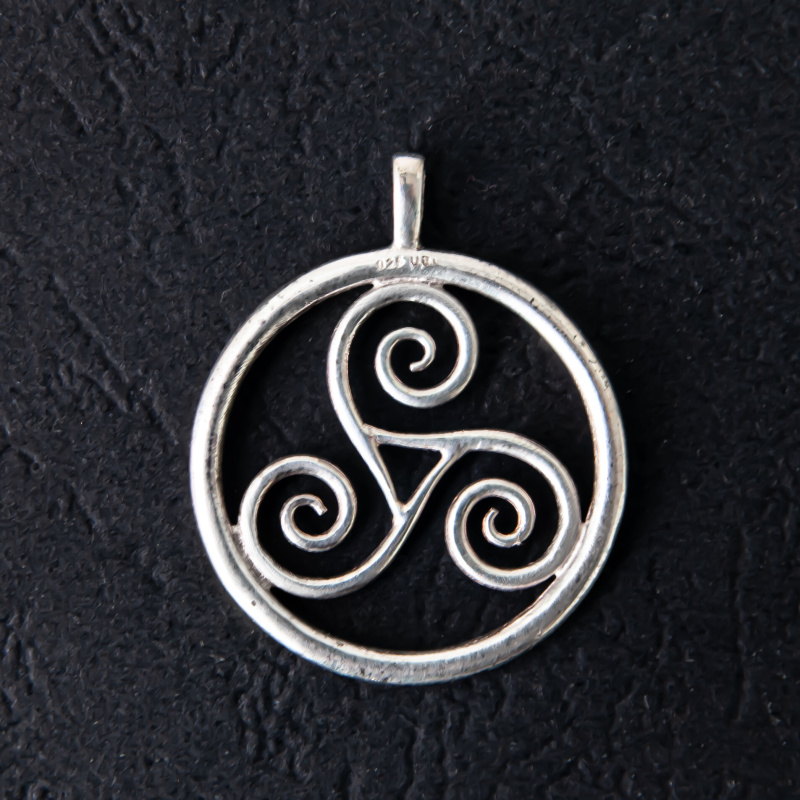 Silver pendant Eternal Trinity depicting three spirals symbolizing the never-ending cycle of water, air and earth.