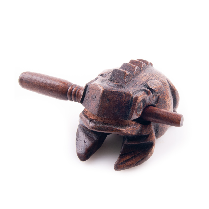 A fun toy and an unconventional musical instrument at the same time. Hand-carved frog has protrusions on its back, which, by passing the attached mallet, emit cheerful sounds of frog croaking. A wonderful tool for little and big amateur musicians alike.