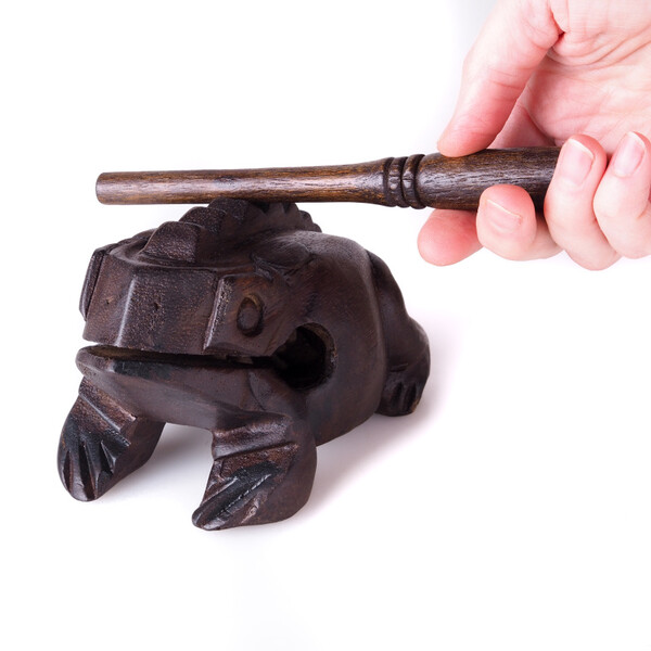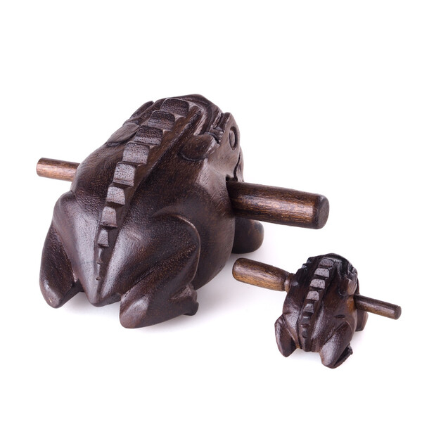 A fun toy and an unconventional musical instrument at the same time. Hand-carved frog has protrusions on its back, which, by passing the attached mallet, emit cheerful sounds of frog croaking. A wonderful tool for little and big amateur musicians alike.