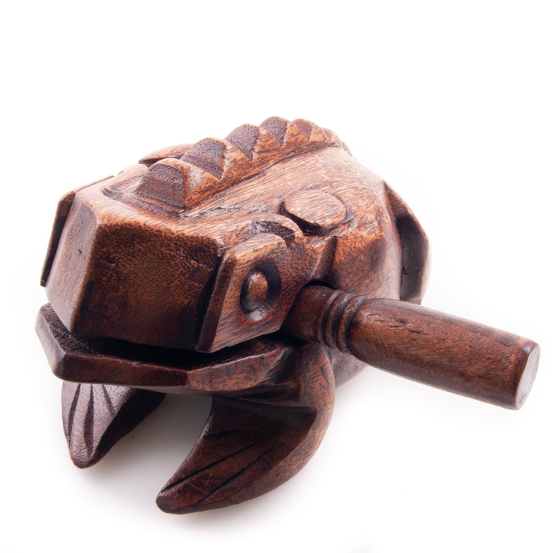 A fun toy and an unconventional musical instrument at the same time. Hand-carved frog has protrusions on its back, which, by passing the attached mallet, emit cheerful sounds of frog croaking. A wonderful tool for little and big amateur musicians alike.