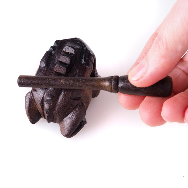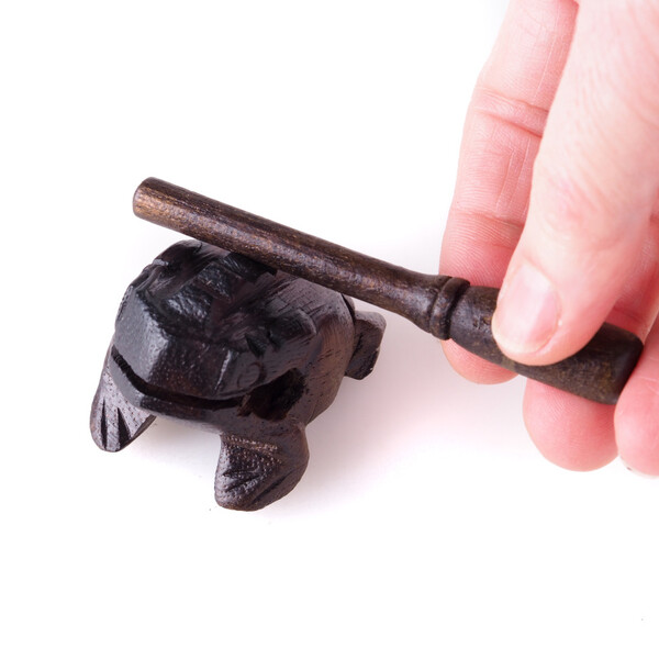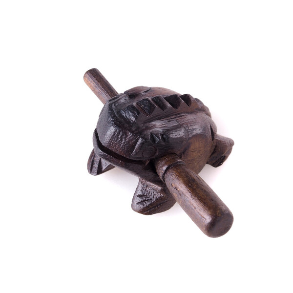 A fun toy and an unconventional musical instrument at the same time. Hand-carved frog has protrusions on its back, which, by passing the attached mallet, emit cheerful sounds of frog croaking. A wonderful tool for little and big amateurs musicians alike.
