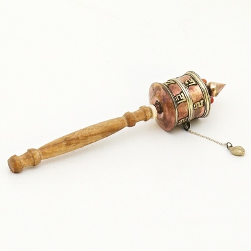 The Tibetan mill is a hollow cylinder of any size fixed so that it can rotate. Attached to the metal or wooden body of the mill is a string or chain carrying a metal ball, which is used to keep the mill running. On the surface of the body of the mill a mantra is carved or sculpted. Inside the cylinder are strips of paper on which mantras, sutras, or prayers are printed. With each turn of the mill, the prayers inside and outside are read and thus the Buddha's teachings are spread to the surrounding area. The small mills usually strengthen the energy centre of the person who spins them.