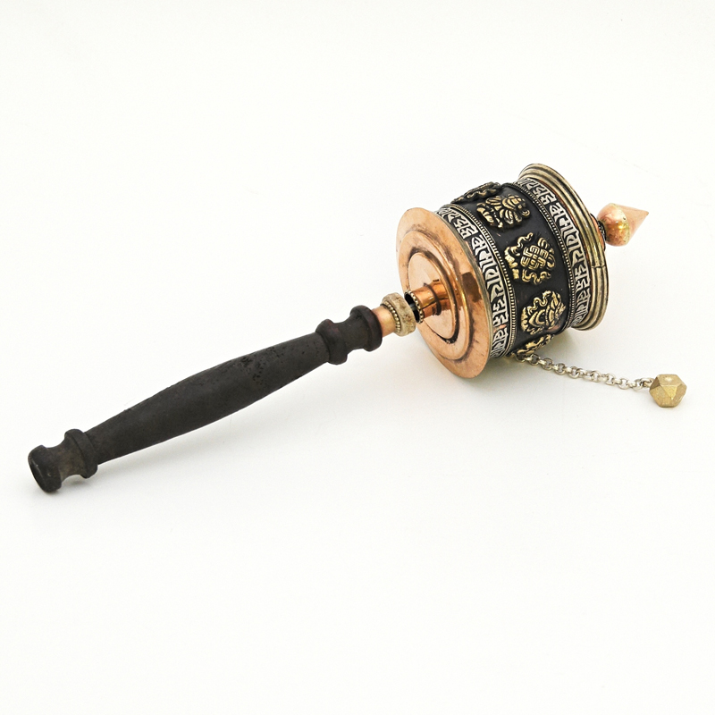 The Tibetan mill is a hollow cylinder of any size fixed so that it can rotate. Attached to the metal or wooden body of the mill is a string or chain carrying a metal ball, which is used to keep the mill running. On the surface of the body of the mill a mantra is carved or sculpted. Inside the cylinder are strips of paper on which mantras, sutras, or prayers are printed. With each turn of the mill, the prayers inside and outside are read and thus the Buddha's teachings are spread to the surrounding area. The small mills usually strengthen the energy centre of the person who spins them.