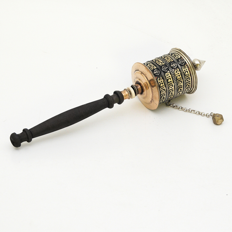 The Tibetan mill is a hollow cylinder of any size fixed so that it can rotate. Attached to the metal or wooden body of the mill is a string or chain carrying a metal ball, which is used to keep the mill running. On the surface of the body of the mill a mantra is carved or sculpted. Inside the cylinder are strips of paper on which mantras, sutras, or prayers are printed. With each turn of the mill, the prayers inside and outside are read and thus the Buddha's teachings are spread to the surrounding area. The small mills usually strengthen the energy centre of the person who spins them.