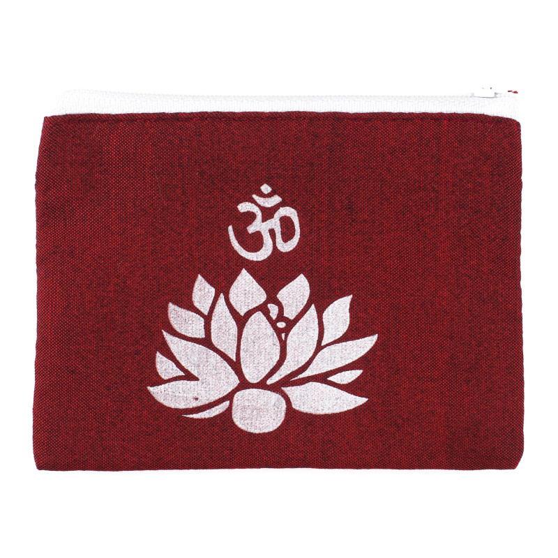 Quality Balinese wallet made from double-layered, very pleasant to the touch soft cotton in a bold, vibrant burgundy red colour with a classic zip. The interior space is not divided, and can store anything – from coins and notes, to receipts or business cards, to personal charms and other small daily necessities. The wallet is decorated with a lotus motif and the sacred symbol of Om.