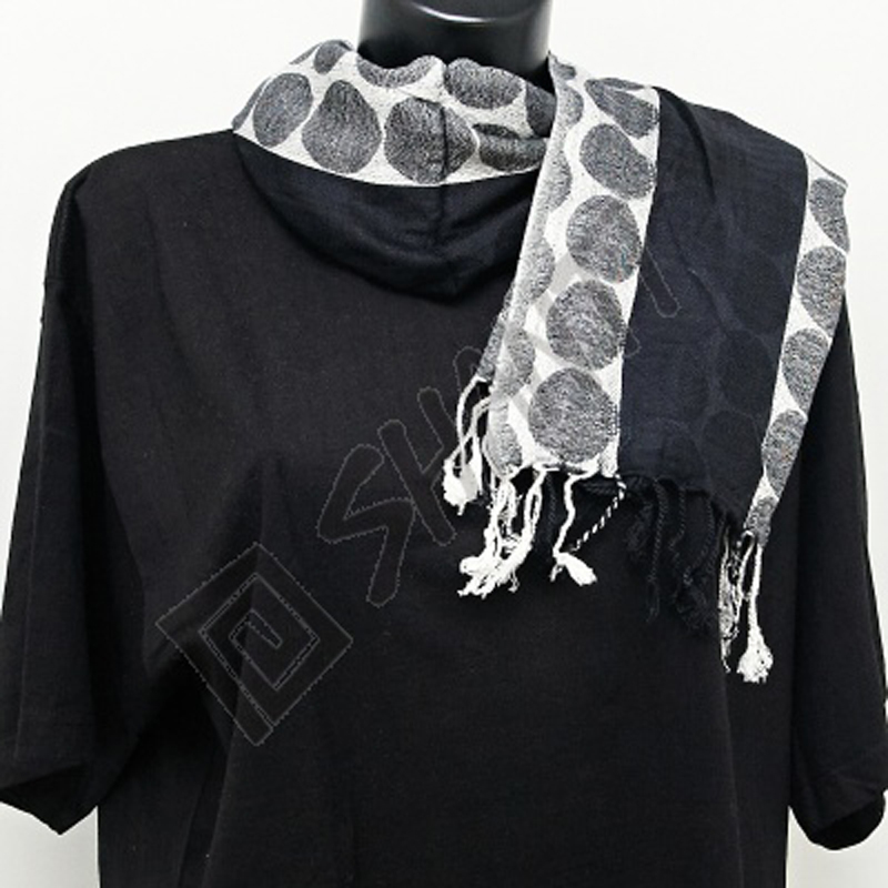 Modern scarf with various motifs set in stripes, black and white design, Noir V stripes.