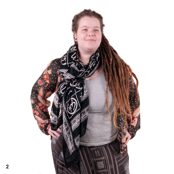 A fashion accessory with a magical motif. Fold the cotton scarf with the image of the symbol of Om as you are used to and absorb its positive energy.