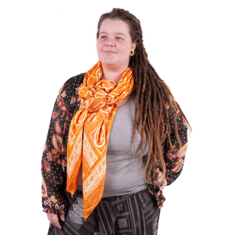 A fashion accessory with a magical motif. Fold the cotton scarf with the image of the symbol of Om as you are used to and absorb its positive energy.