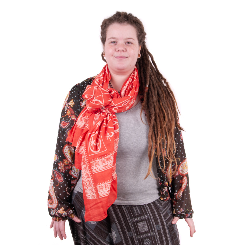 A fashion accessory with a magical motif. Fold the cotton scarf with the image of the symbol of Om as you are used to and absorb its positive energy.