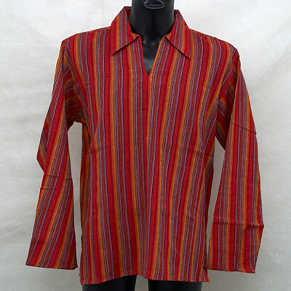 Elegant and airy men's cotton shirt kurta Daniel, size M, colour red