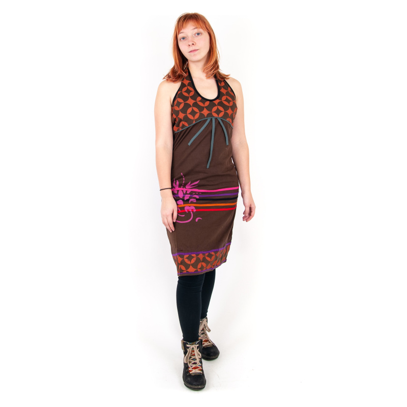 Comfortable long cotton dress Barbara, with luxurious butterfly embroidery on the chest, size L, colour brown