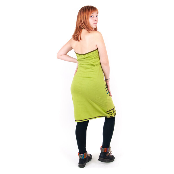 Comfortable cotton long dress Barbara, with luxurious butterfly embroidery on the chest, size XL, colour green