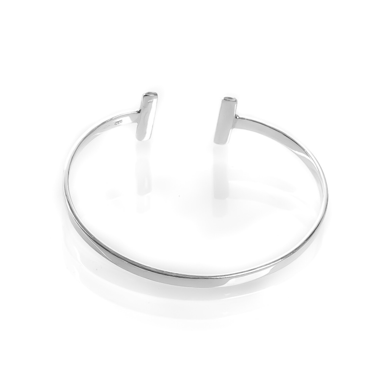 Simple silver bracelet finished with two distinctive T.