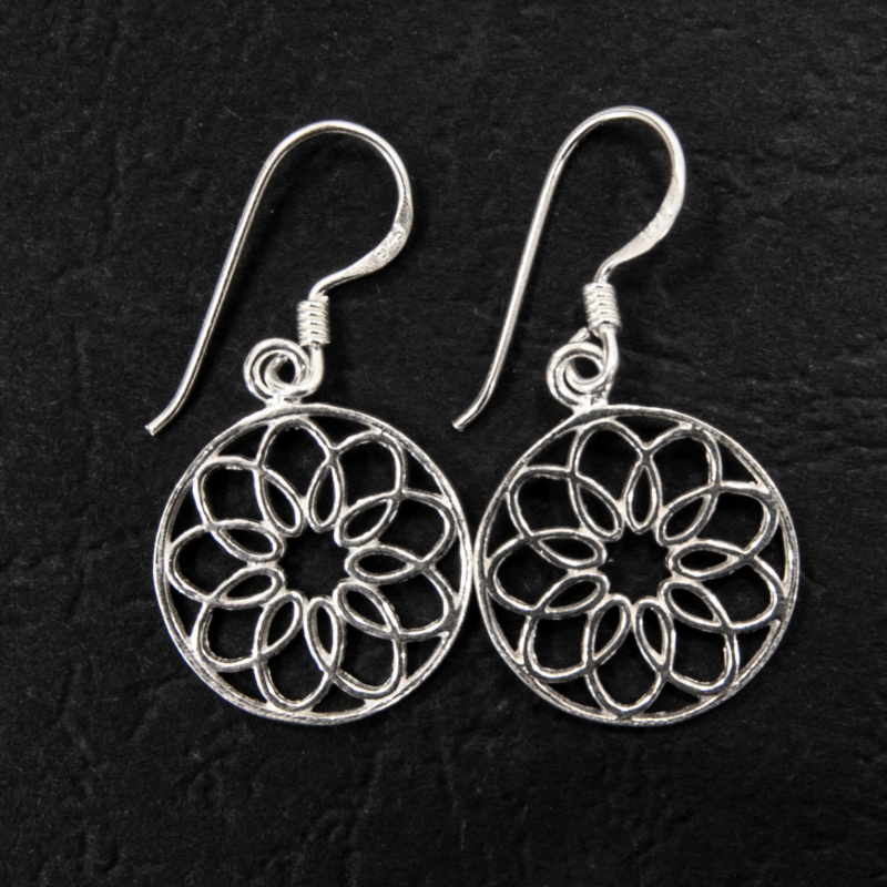 Silver mandala earrings.