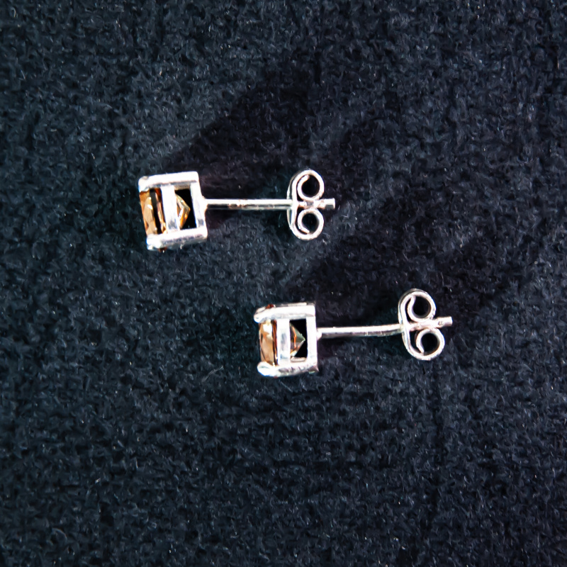 Silver Earrings Simple Brown Stone