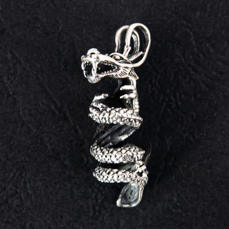 Product description Silver Pendant Curled Chinese Dragon