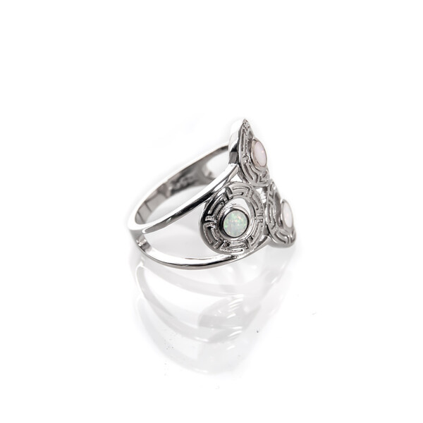 Product description Silver Ring Three Brooches White Synthetical Opal 10
