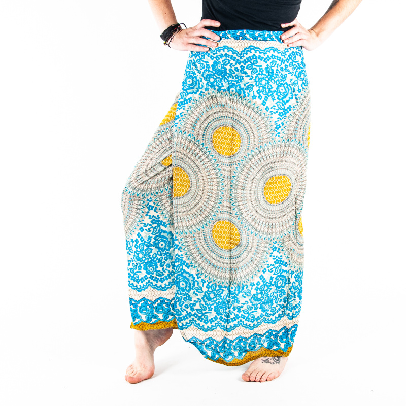 Cotton skirt Honeycomb Mandala Light in light blue with multiple tie options