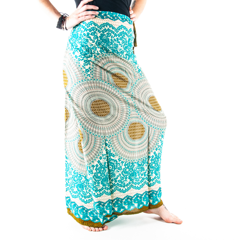 Cotton skirt Honeycomb Mandala Light in turquoise with multiple tie options
