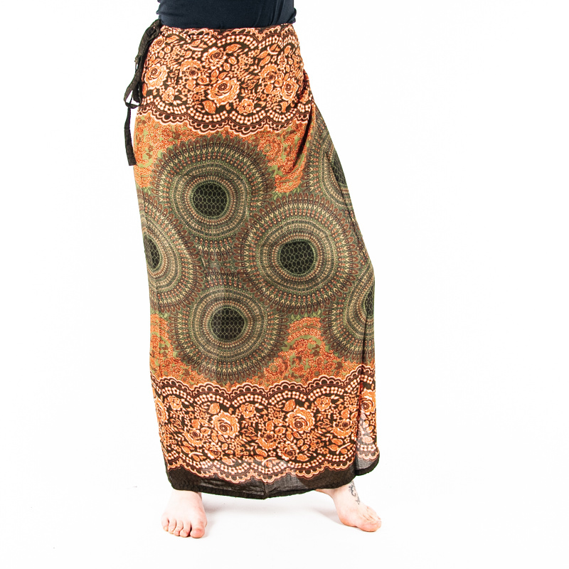 Cotton skirt Honeycomb Mandala Split in green with multiple tie options