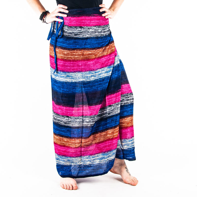 Multicolour Stripes multi-way tie skirt in cotton, model 01