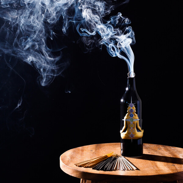 The unconventional handmade smoking bottle replaces the conventional incense stick holders. The stick is suspended inside the bottle by a bamboo split using the included ring (see photo). This ensures that the ash from the stick falls inside the bottle.