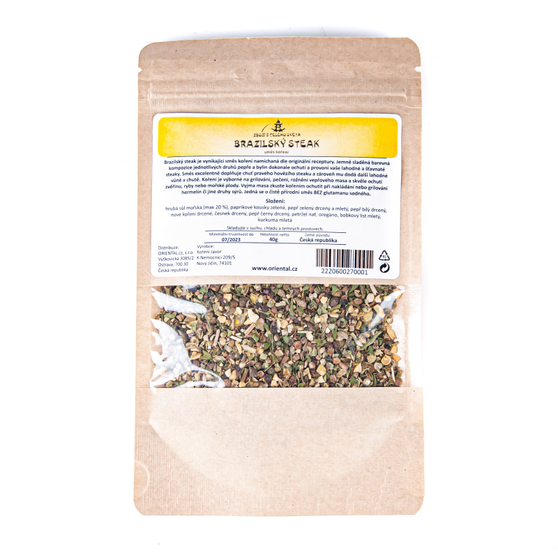 Ingredients: coarse sea salt ( max 20%), green peppercorns, crushed and ground green pepper, crushed white pepper, crushed allspice, crushed garlic, crushed black pepper, parsley, oregano, ground bay leaf, ground turmeric