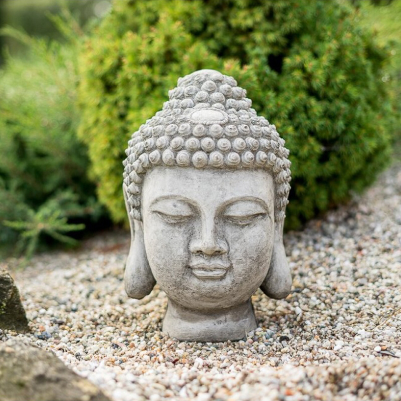 The statue depicting the head of the enlightened Buddha is made of concrete, which makes it resistant to frost and weather conditions, and ideal for outdoor spaces. Placed on a balcony, patio or garden, facing the door, the Buddha will bring beneficial energy into your home, according to feng-shui principles.