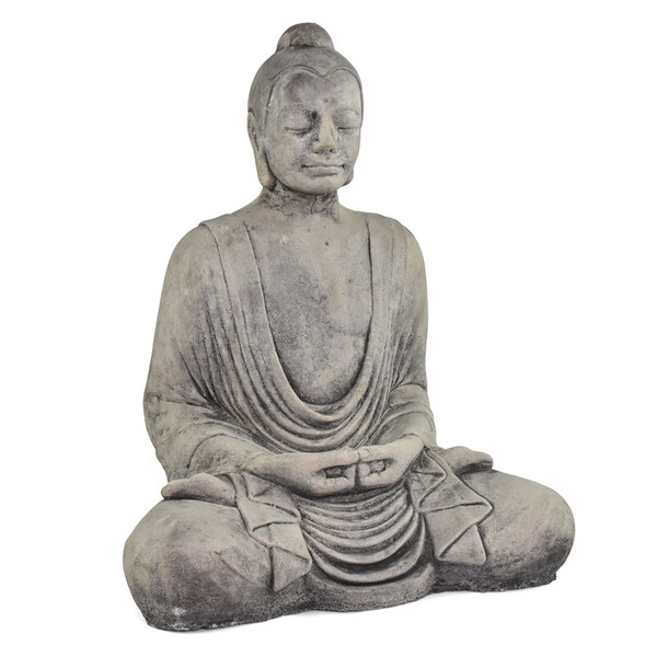 The statue depicting the enlightened Buddha is made of concrete, which makes it able to withstand frost and weather conditions, and is ideal for outdoor spaces. Placed on a balcony, patio or garden, facing the door, the Buddha will bring beneficial energy into your home, according to feng-shui principles.