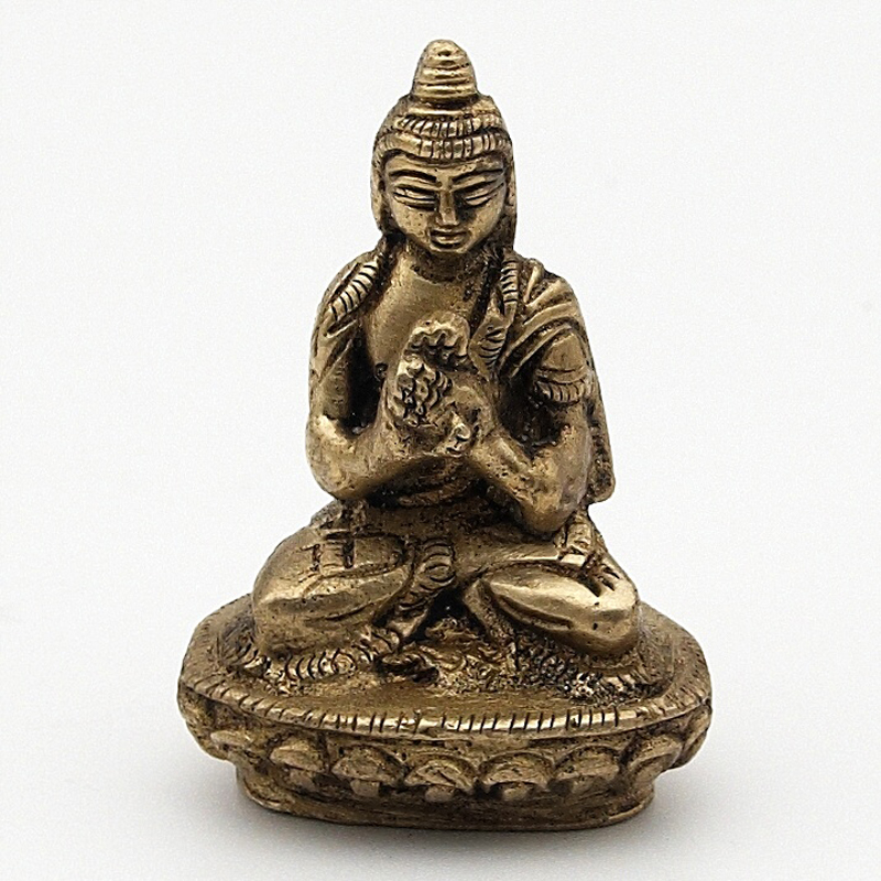 The Buddha is often depicted with a shaved head or short-cropped hair, sometimes with a crown. His colour is golden.