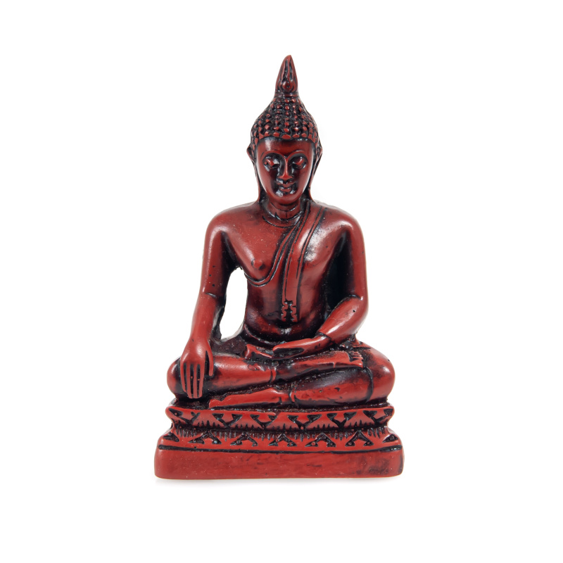 The statue, depicting Buddha, is cast in resin. Resin is a mixture of polyester resin and floating chalk. Resin products are very precisely crafted with attention to every detail.